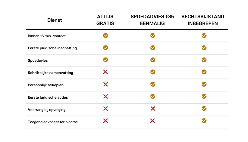 Onze spoedservice is inbegrepen bij uw rechtsbijstandpakket – of beschikbaar voor slechts €55 per keer.