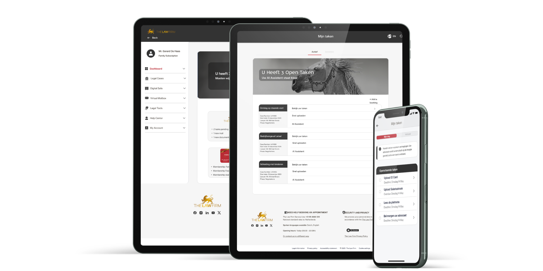 Met de The Law Firm App regelt u al uw juridische zaken op één centrale plek. U plant afspraken, verstuurt berichten, opent documenten en volgt de voortgang van uw zaak – waar en wanneer u maar wilt.