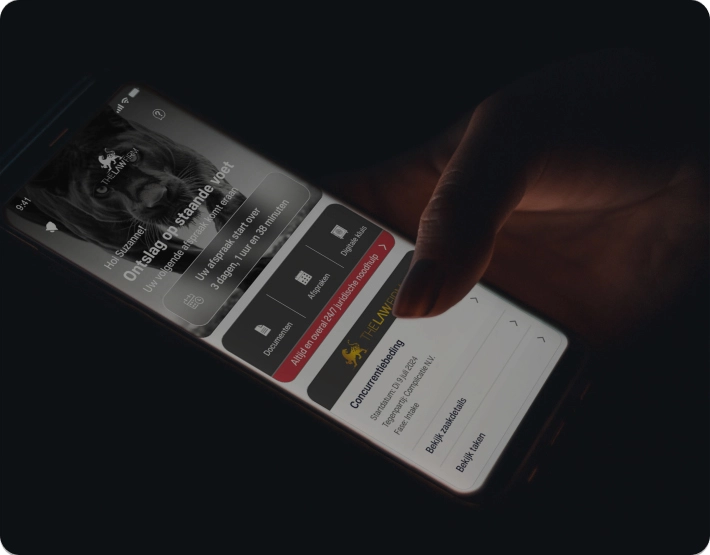 Met de The Law Firm App regelt u al uw juridische zaken op één centrale plek. U plant afspraken, verstuurt berichten, opent documenten en volgt de voortgang van uw zaak – waar en wanneer u maar wilt.