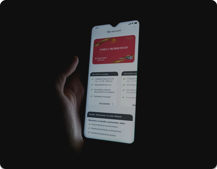 Geen onnodige telefoontjes of e-mails meer – met één druk op de knop krijgt u direct juridisch advies. Daarnaast kunt u videobellen met uw advocaat zonder extra software, volledig geïntegreerd in de app. Veilig, vertrouwd en direct vanuit uw eigen omgeving.